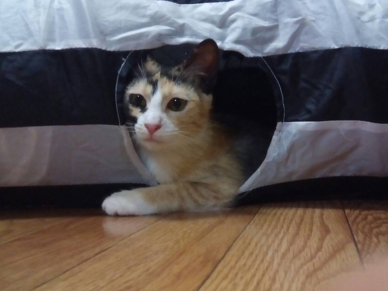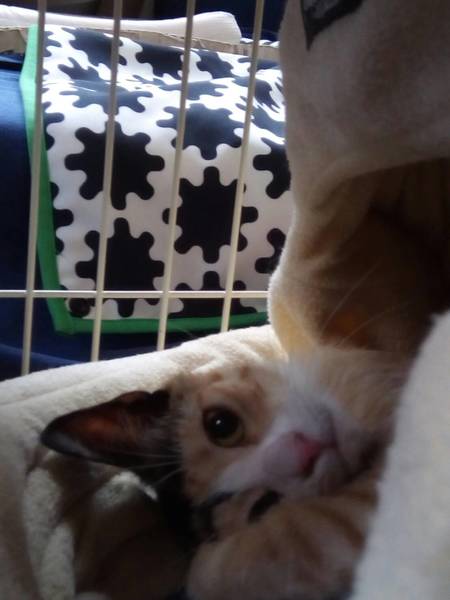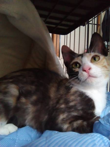 | 特徴(性格など) | 一足先に保護した、白にゃんととても仲が良く、ふたりでじゃれ合ってあります。 白にゃんよりは、上位に立っているようです。猫のトンネルなど、ミケちゃんはよく遊んでおられ、警戒心の低さを確信したところでございます。 |