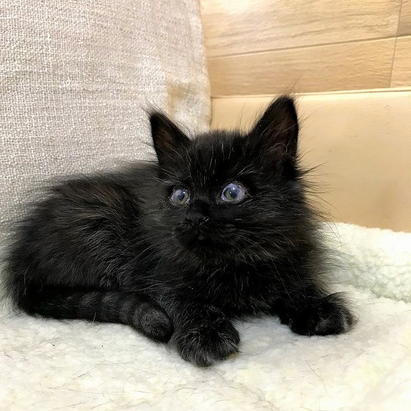 | 特徴(性格など) | ☆仮名 メアリー ☆性別 メス ☆年齢 推定3ヶ月(2019年3月中旬頃生まれ) ☆体重 1キロ(2019年6月5日現在) ☆毛色 黒長毛。ブラックスモーク? ☆猫風邪治療済み ☆寄生虫駆虫(レボリューション2回) ☆トイレ躾済み ☆3ワクチン2回済み ☆エイズ白血病(陰性) ☆猫風邪の後遺症で目に白濁が残っています。 保護時(推定1ヶ月)はたったの180グラムしかなかった小さな小さなメアリー。 風邪の治療を頑張って1キロを超え、活発な女の子に成長しました。 平均より小さめの体ですが、ごはんをモリモリ食べて元気いっぱいです。 ごはんはドライフードを1日3回に分けて与えています。 やわらかいふわふわな長毛。 毛色は、黒一色でなくグレーまじりで「ブラックスモーク」のよう。とってもオシャレです。 猫風邪で角膜潰瘍(角膜の傷)を起こし、目薬を毎日頻回点眼して治療しました。 その甲斐あって良くなってきましたが、黒目の一部白濁は完全には消えないかもしれません。 視力に問題はなさそうです。 キョウダイたちと追いかけっこをしたり、階段の上り下りも健常な子と同じようにしています。 オモチャでもよく遊びます。 ★まだ子猫です。たくさんかまって愛情を注いでほしいため、お留守番がないか、短いおうちを希望します。 ★キョウダイ「ブライアン」「ロジャー」も募集中です。 仲良しなキョウダイ同士でのお迎えをご検討いただけると嬉しいです。 ★若い遊び好きな先住猫さんともうまくいくと思います。 ★保護猫たちの様子は動画をご覧ください♪ https://www.youtube.com/user/komugi710 このページの「動画」をクリックしてください。 保護からの成長記録がたくさんあります。 |