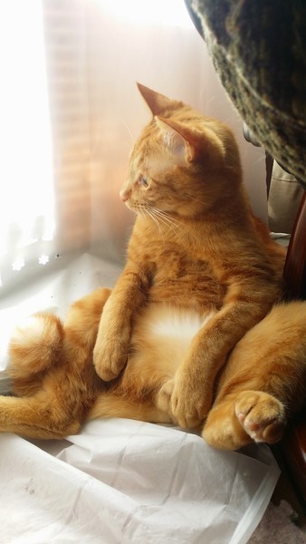 | 特徴(性格など) | いろいろ話しかけてくる子。性格は、俺様で、ビビリで、ちょいヤンキー。それでいて、シャンプーも爪切りも、黙ってさせてくれるおっとりさんです。体格は大きめで、ビーズクッションのように「くたっ」とした柔らかい抱き心地。スコではないけど、スコ座りします。 | ||