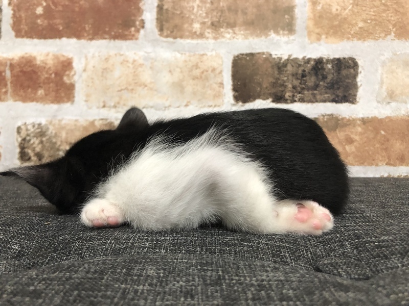 | 特徴(性格など) | クロタン・ド・シャヴィニヨルちゃん(以下長いのでクロタンちゃん)は、チーズ一族の4兄妹のマンマル隊長です。 短い手足に、むっちりボディ!(^^)!短い曲がりくねったしっぽにピンクのお鼻(=^・^=)全身からかわいらしさがあふれています! そして・・・見たことが無いくらい・・・立派な・・・・まゆげ\(◎o◎)/! (昭和世代の私には過去の某総理大臣の名前が頭に浮かんだくらいです・・・) でも眉毛が長いのは長寿なイメージなのでいいんです!! クロタンちゃんの食欲は大で、だれよりもよく食べます! おもちゃで遊ぶのも大好きです。 お父さんジャングルジムも大好きです。 ゴロゴロ喉を鳴らすのがへたくそです。なかなかゴロゴロ言えないので心配しましたが、最近は少しごろごろ言えるようになりました!眠る姿はかわいらしいです(*^_^*) 保護主宅には小さい子供、先住猫、保護犬もいますので、環境への対応は比較的早いかと思います。 クロタンちゃんは、兄妹にゃんこの、チェダーちゃん、リコッタちゃん、リヴァロくんとのお迎えを希望します! 4匹一緒でも!・・2匹でも・・ |