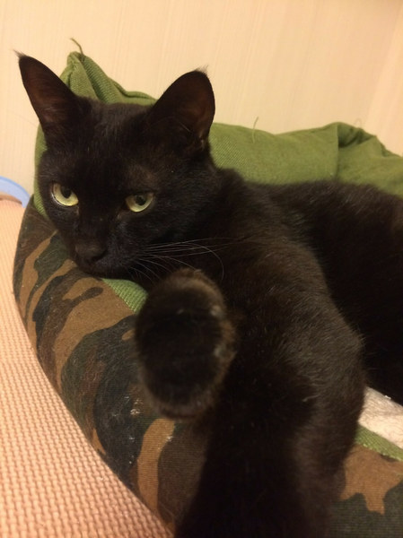 | 特徴(性格など) | ボクはチョコくん。 もう3歳で大人のイケメン黒にゃんこだよ! もう大人だけど、おもちゃであそんじゃうし、なでなでも大好きなんだ。 お腹のところに、白いカッコいい模様があるんだ。ぼくの家族にしか見せないことにしてるから、楽しみにしていてね! 時々どんくさいって言われるけど、そんなことないと思う。 どこかにボクの本当の家族がいるから、譲渡会で頑張ろうねって言われたんだ。よく分かんないけど、ボクは幸せになれるんだって! お迎えに来てね。待ってるね! --------------------------------------------------- 黒猫のチョコくんは、同じ年齢くらいのオス猫ちゃんがいれば、もちろんお互いの性格もありますが、遊び相手になれるのではないかと思います。 基本的に気性は穏やかですが、甘えてじゃれていると興奮してきて、爪のでない猫パンチはあります。 また、甘がみが少しきつめに感じられるかもしれませんが、ケガをさせられるほどではありません。 攻撃性はありません。 お留守番はできます。 同じ年くらいのオス猫なら先住OK カリカリもよく食べます。ちゅーるも好きです。 ケージには慣れておりますので、最初はケージからお願いいたします。 移動して最初の何日かは夜鳴きもあるかもしれませんが、数日でおさまります。 人馴れはばっちりです。 寂しいと、人を呼んで鳴きますので、なでなでしてあげてください。 とっても可愛いチョコくんをよろしくお願いいたします。 |