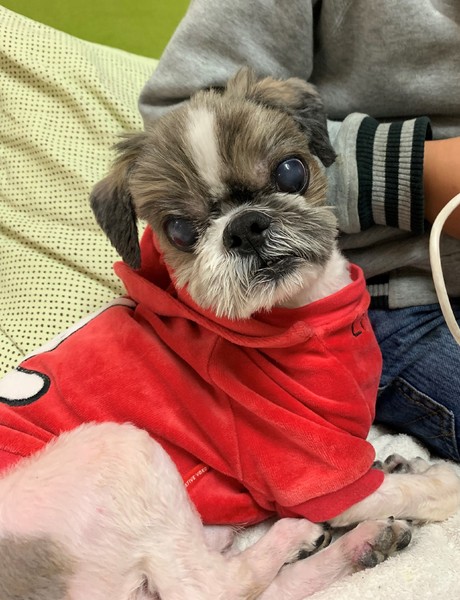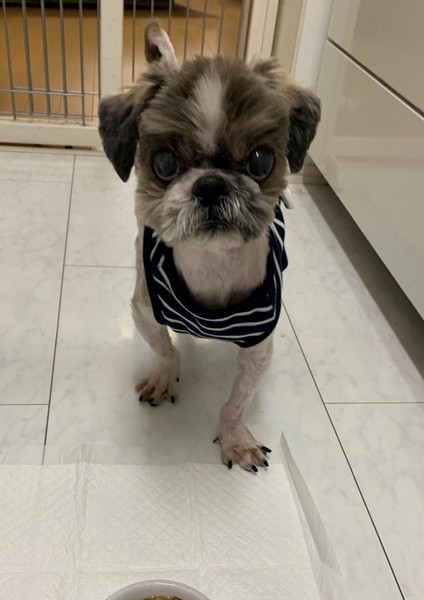 | 特徴(性格など) | 仮名:クック 犬種:シーズー♂ 推定年齢:8歳以上 体重 4.2Kg ★性格・暮らし ・老若男女問わず人が大好きです ・体のどこを触っても攻撃性は全くありません ・ゲージが苦手です ・室内でのトイレは練習中です ・お外が大好きで散歩は上手にできます ・超大型から超小型まで、他犬とは全く問題ありません ・右目のみ視力がありませんが生活に支障はありません ・両目共にドライアイと傷を治すために目薬をさしていますが、嫌がること無く上手にできます ★いままで行った医療行為 ・6種混合ワクチン接種 ・メディカルチェック ・検便検査(-) ・マイクロチップ装着済 ・フィラリア抗体検査(-) ・血液検査(異常なし) ・軽度心雑音(投薬無し) ・去勢手術済み ・歯石除去・抜歯済み ★今後行う医療行為 ・狂犬病予防ワクチン |