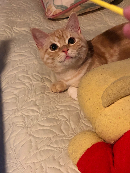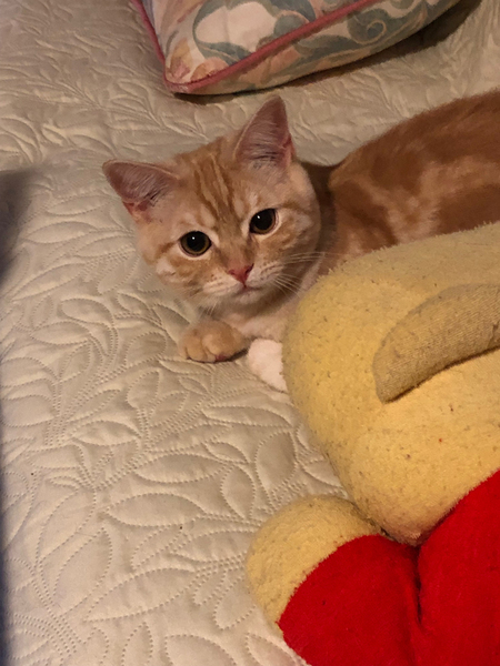 | 特徴(性格など) | ◆猫ちゃんの概要 スコティッシュフォールド(血統書あり) 2018年11月26日生まれ 男の子 名前:ぷうちゃん ◆健康状態 血液検査陰性 ワクチン2回接種済み 去勢手術は6月に実施済み ◆性格や特徴 とにかくまん丸のお目目がかわいい男の子です*^^* もう7ヶ月になるというのに、いつまでも赤ちゃん顔なので、見ていて飽きません。 遊ぶのが大好き、動くものに興味津々の元気盛り。 特にじゃらしや、鏡で反射させた光を追って遊ぶのが好きです。 だっこは好きではありませんが、いつも私の傍で眠っています。 私がPC作業をしていると、必ずPCと腕の間に割って入ろうとします。 べたべたされるのはヤだけどぼくのこと、ちゃんと見ててよー!と言っているようです。 おなか全開で寝るあけっぴろげな性格です♪ 触られるのがうれしい場所は、おなかとアゴ。 おなかを撫でてやると、ぐるぐる言い出します*^^* |