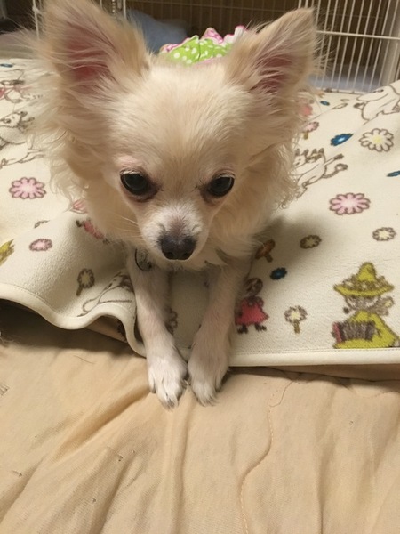 | 特徴(性格など) | ■特徴(仮の名前:マイ) チワワ♀ マイ 推定3~4才 体重2.3キロ ■性格・暮らし ・人が大好きで,とても甘えん坊です。 ・屋外での経験値が低く,怖がりの性格のため,お散歩の時は注意が必要です。お散歩は練習中です。 ・トイレはトイレシーツでできます。 ・お留守番,就寝はサークルでできます。 ■今までに行った医療行為 ・6種混合ワクチン (4/17) ・健康チェック (4/17) ・血液検査(4/17) ・フィラリア抗原検査(ー) (4/17) ・マイクロチップ(4/17) ・避妊手術(4/17) ・歯石除去(4/17) ■今後行う予定の医療行為 ・狂犬病予防ワクチン接種 ・検便 |
