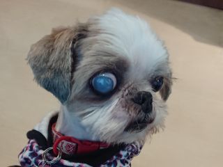 | 特徴(性格など) | ●性格 ・なでなでが大好きで手を止めると催促したり甘え上手な仔です。 ・とにかくおっとりしていてますが、音にびっくりしたりビビリちゃんな所もあります。 ●治療経緯・健康状態 ・5種混合ワクチン・・・2019/04/08 ・狂犬病予防接種・・・2019/03/04 ・避妊・去勢手術・・・不明 ・マイクロチップ装着・・・未 ・フィラリア・・・マイナス *フィラリア/ノミダニ予防は投薬で健康上の問題が生じない限りは全頭に行っています。 ・その他健康状態・・・ 右目が緑内障なので眼圧降下剤の点眼薬を始めています。 点眼薬は一生涯必要になります。 両目ともドライアイのため、定期的な点眼が必要です。 ・体重・・・4,8kg ●毎日の生活について ・トイレトレーニング:室内外どちらでもできます。トイレシートの認識があります。 ・サークル/クレート:サークル・クレート共に大人しくできますが、長時間入ってると稀に吠えがあります。 ・留守番や就寝時:お留守番・就寝時も大人しくできます。フリーでも悪戯はありません。 ・吠えに関して:ほとんど吠えませんが うんちをする前にたまに吠えて教えてくれます。 ・車移動に関して:ドライビングボックスにリードで係留し大人しく車移動できます。車酔いはありません。 ・お手入れに関して:シャンプー・ドライヤー・ブラッシングどれも大人しくできます。 ●里親様にお願いしたいこと ・不意に出る生活音等にびっくりして飛び起きる事があるので、注意してあげて下さい。 ●アピールポイント ・まだまだ若いもんには負けません!お散歩もご飯も大好きなおっとりお婆たん。 ●預かり日記:愛*らぶ~shih-tzu~と~チビッチョ~story http://ameblo.jp/nirorocotas/ |