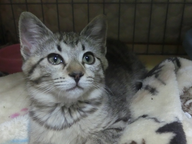 | 特徴(性格など) | グレーぽいキジトラで尻尾は長くて真っ直ぐです。友好的で大人の猫とも仲良しです。 | ||
