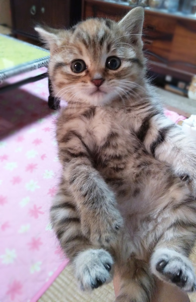 | 特徴(性格など) | 6月2日(日)12:00~16:00(最終申込15:30) ねこざんまい譲渡会に参加予定です! 《会場のご案内はこちら》 https://ameblo.jp/neko3mai/entry-12464439430.html 希望の猫ちゃんがいる場合は、12時に会場へお越し下さい。 先着順ではございませんが、同じ猫ちゃんに複数名のご希望者さまがいらっしゃる場合は、12時半でお見合い受付を締め切らせていただく場合がございます。 ※譲渡会ご来場につきまして、事前予約は不要です ★★★ご来場前に必ずご確認下さい★★★ 《里親様へお願いはこちら》 http://www.neko3mai.com/condition/condition.html 《家族募集中猫ちゃん一覧はこちら》 http://www.neko3mai.com/entrycats/entrycats.html ◆ 名 前 ◆ ももちゃん ◆ 年 齢 ◆ 2ヶ月半 ◆ 性 別 ◆ 女の子 ◆性格は?◆ 少し慎重なタイプでしたが、預かりさんにとても可愛がられ、人懐っこくなっています。 毎日元気一杯駆け回っているので、食欲旺盛です。 パステルのキジトラで、おでこの茶色柄(名付けて「やる気スイッチ」)がチャームポイントです。 保護当初から栄養状態が良かったのか、フカフカで触り心地の良い子猫さんです。 丸くておへちゃな顔立ちも可愛いです。 ペットではなく、共に暮す家族の一員としてお迎えくださるお家を希望しておりますので お世話してくださるご家族の皆さん、またはご夫婦ご一緒に会いにいらしてください。←重要 |