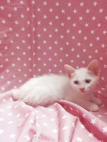 | 特徴(性格など) | ブルーの可愛い目をした女の子ですが、走るのもジャンプも大好き!男の子に負けてません。待ち構えて飛び掛かれば男の子も逃げ出します。体格は小さいですが、元気いっぱいです。 |