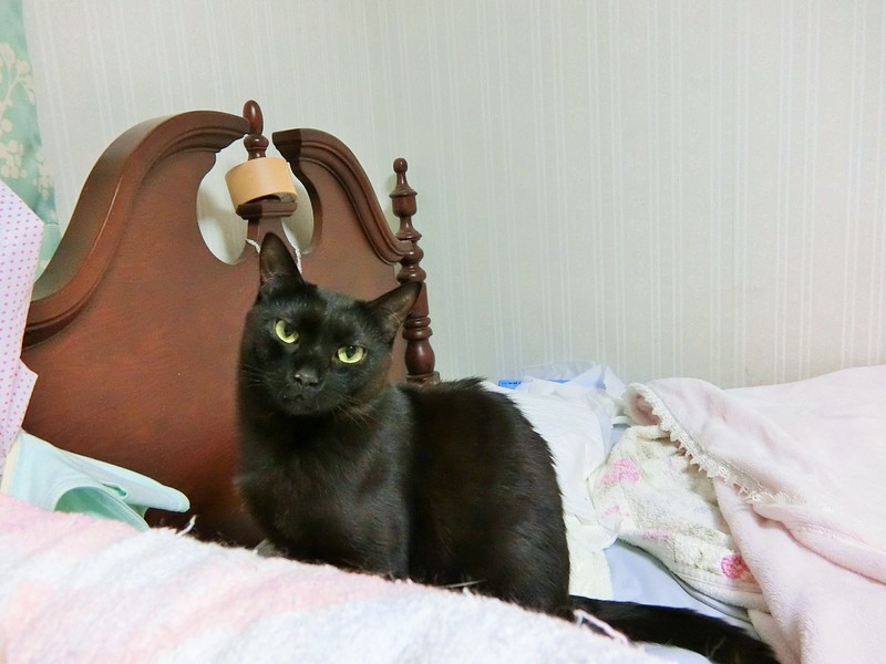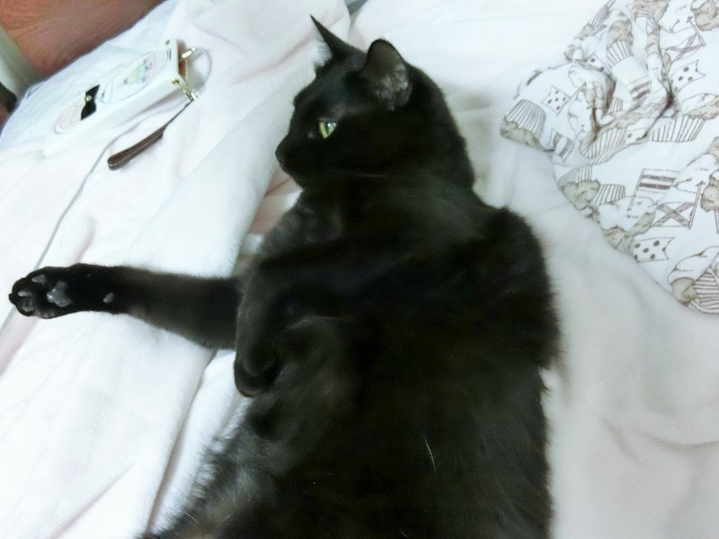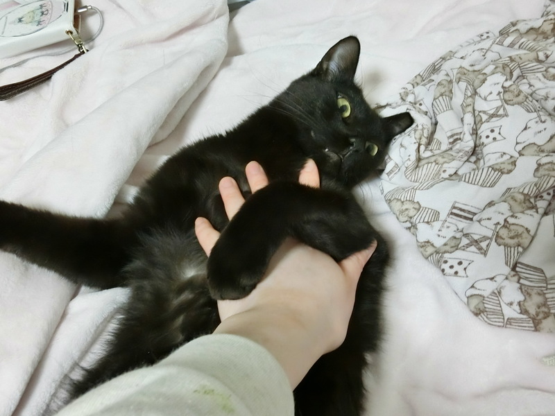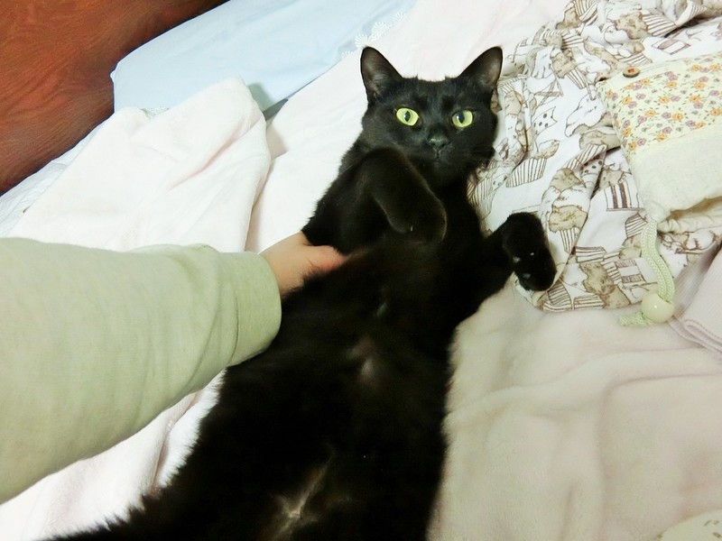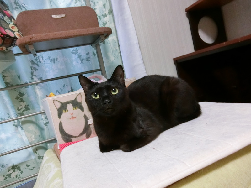 | 特徴(性格など) | 仮名、クロミちゃんという女の子です。 避妊手術、3種ワクチン、駆虫、シャンプー、爪切り、トイレの躾が済んでいます。 パルボ、エイズ、白血病、すべて陰性です。 快食快便。ウェットフードが大好きですがなんでも食べます。 ナチュラルチョイスシリーズを中心としたプレミアムフードが主食です。 標準体型内ですがお腹プヨプヨ、筋肉少な目 尻尾は長く、先端まで完全にまっすぐです。 反射して写真うつりが悪くなるくらいツヤツヤ輝く毛並です。 ※保護した時の猫風邪の後遺症で、若干お口が臭うため、継続的なサプリメントの投与をおすすめします。 安く種類も多いので月1500円くらいで済みますし、味もおいしいので餌に混ぜるだけで簡単に食べてくれます。 数えきれないくらい猫を保護してきましたが、トップクラスの甘えん坊レベルです。 隙あらば甘えてきて一人で相手をするのがちょっと疲れるくらいです。 あまり構えない、ずっとくっつかれると疲れるという方には向きません。 そばにいるともうずっとベタベタしてきます。足元でもくっついてます。 ベッドに座ると100%追いかけてきてくっついた状態でコネコネコ始めます。 寝るときも一緒にきます。中に入れると大喜びします。 抱っこはもちろん、キスしたり顔をさわられるのも大好きです。 繊細で傷つきやすいです。うっかり足をぶつけてしまったり尻尾を踏んでしまうと、ショックで逃げ回って抱っこして可愛がるまで復活しません。 人間が普段いない部屋に移すとショックで隠れて出てこなくなります。 初対面の人にも数時間〜一日でなつきますが、環境の変化に弱くお部屋が変わると隠れてしまうため、最初の数日はケージか個室で様子を見たほうがいいです。 猫見知りはほぼしないです。色んな猫に自分から愛想よくゴロゴロしにいきます。 運動量は平均的。一緒に遊ぶ友達がいれば走り回りますが、一匹だとオモチャ転がす程度で運動量が落ちます。 子猫に対してとても愛情深くなめて抱きしめて、一緒に遊びます。 遊び相手がいて、留守時間の少ない、家族形態の環境を希望しております |
