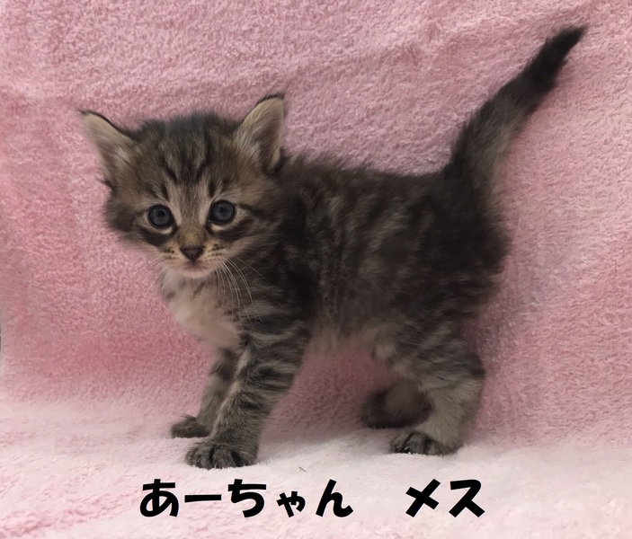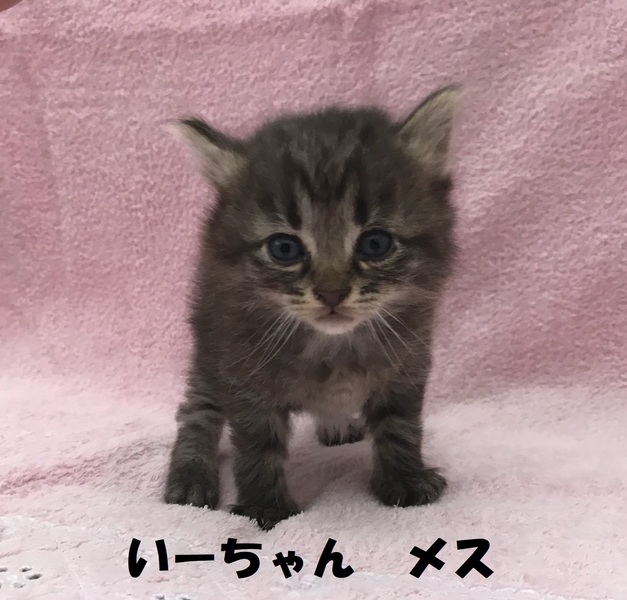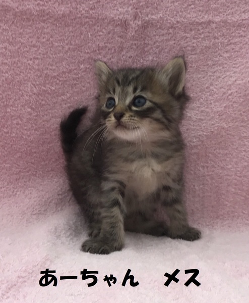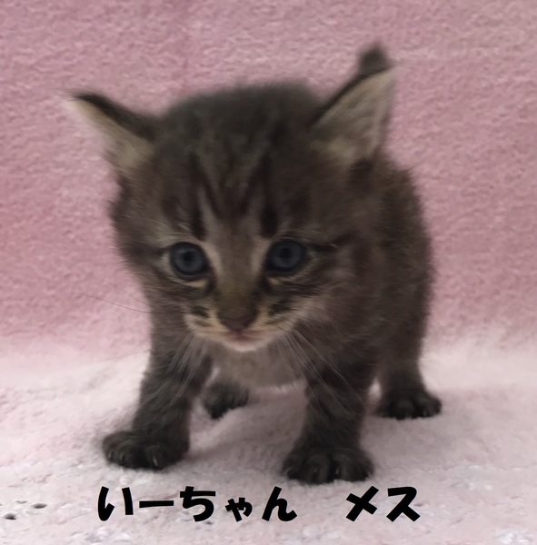 | 特徴(性格など) | ★あーちゃん、メス、キジ、生後1ヵ月、写真2.3★いーちゃん、メス、濃いキジ、生後1ヵ月、写真4.5★うーくん、オス、キジ白、生後1ヵ月、写真6.7★母親は半野良ですが、人間に懐いているため、子猫も人懐っこい性格をしています。 兄妹で元気に遊んでいます。*健康状態* 問題なし。 現在は母乳を飲んでいます。 もうそろそろ離乳食になると思います。 ★体重は3匹とも350グラム前後で、片手に乗るくらい ★ノミ駆虫済み |