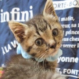 | 里親募集する理由 | 野良猫の子猫で、猫風邪をひいていたところを保護して治療しました。 | ||
