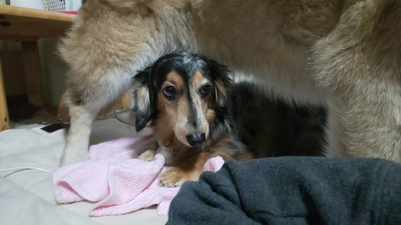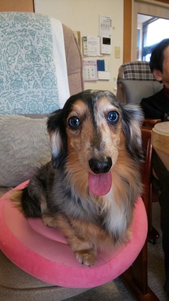 | 特徴(性格など) | 仮名、ライチちゃん。ミニチュアダックス。毛色は、ダップルグレイです。 ♀。9才。体重5キロ。 割とマイペースな性格です。 人間大好き。すごく人に馴れていて、いじらしい程です。 他の犬は、威嚇されたりするとダメですが、おとなしい仔や遊び好きな仔は大丈夫です。 お散歩大好き。オモチャ遊び大好き。 トイレは、完全室内です。 前の飼い主さんのところにいた時に、 引き付けと軽いヘルニアを起こしたことがあります。 保護して半年近くになりますが、現在は落ち着いています。 多分、ストレスによるものだと思います。 |