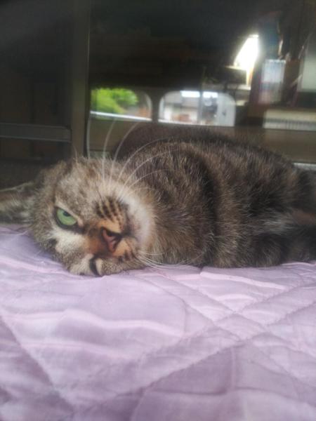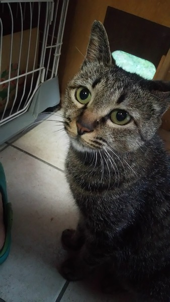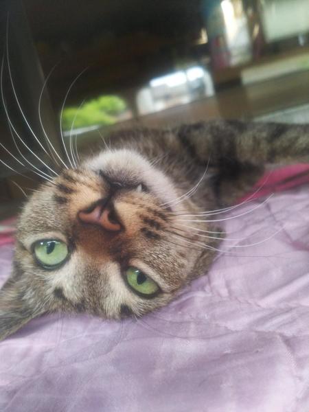 | 特徴(性格など) | キジトラの人懐っこい甘えん坊です! すぐにゴロゴロスリスリしてきてゴロンと転がります。 ゴロンしながら爪切りもブラッシングもさせてくれるし、避妊後の抗生剤飲ませるのもすんなり口を開けてくれて飲ませやすかったです。 ほかのねこちゃんわんちゃんは苦手なようですが、人はとにかく大好きです。 顔はクールな感じですが、性格はすごくかわいいです。 |