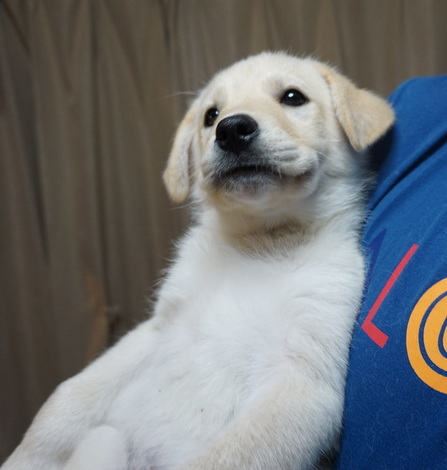 | 特徴(性格など) | ラブ系の大型犬の血をうけついてるようです。 将来は20キロ以上の大型犬予想 最初だけ少し人見知りをします。 ですが結構すぐに慣れてくれます。 性格も気の強すぎるところも無く甘えん坊で元気な男の子です。 とても元気なので静かに暮らす、というより 犬と一緒にアクティブに過ごしたいという家族向きです。 元気だしイタズラもすごいので、破壊を覚悟して迎えてください。 トイレはまだ練習中ですがずいぶん出来るようになっています。 ですが新しい環境ではトイレのトレーニングはいちからです。 子犬はトイレのトレーニングと吠えはつきものです、 ただただ試行錯誤で向き合うしかありません。 それらに関して不安がある方はお申し込みは遠慮ください。 |