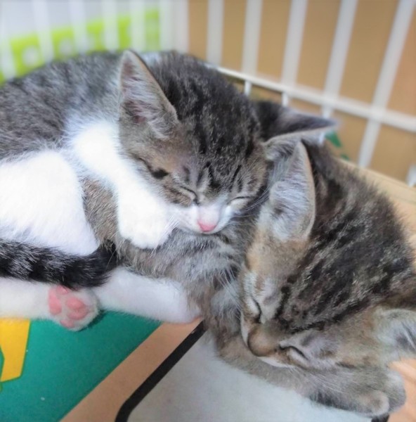 | 特徴(性格など) | 目がまんまるで、とても可愛いです。左の首のところに黄土色のラインがあります。尻尾は短めで少し曲がっています。性格はおてんばさんで、他の子よりも活発です! ★お願い★ 現在5匹兄弟で楽しく過ごしています。だいふく(男の子)と一緒に里親になってくださる方を希望します。 |