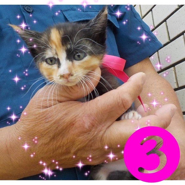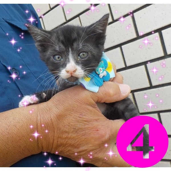 | 特徴(性格など) | 三毛、さび、グレー、ハチワレの可愛い4兄弟です。 | ||