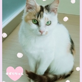 | 特徴(性格など) | 性格・特徴 とても人懐っこく抱っこが大好きな白三毛さんです。天真爛漫な性格で少々のことでは物怖じしません。優しく接して下さるご家族を希望します。 健康状態 極めて良好 ウィルス検査(陰性) |