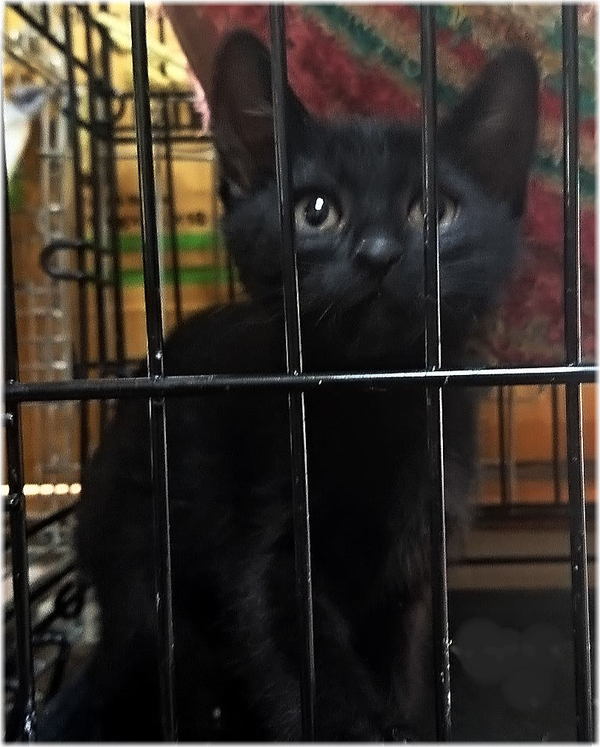 | 特徴(性格など) | 生後約2ヶ月の黒猫、元気いっぱいの女の子。 今回一緒に募集しているキジトラ猫ちゃんと兄弟です。 兄弟同士2匹でよく遊びますが、人にも慣れていて人見知りもほとんどしません。 |