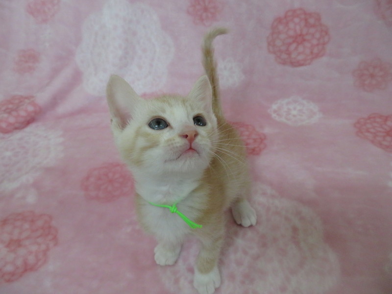 | 特徴(性格など) | 仮に「ぴかまるくん」と呼んでいます。 兄妹の中で一番体が大きくピョンピョン跳ねまわって遊びます。眠たくなるとテントへコッソリ帰っていきお気に入りのにゃんモックにの登っていきます。 ご飯も一番に食べ終わります^^ かなえ・いぶき・かりん・ぴかまる・はるもにの5兄妹です(はるもにくんはトライアル決定しています) |