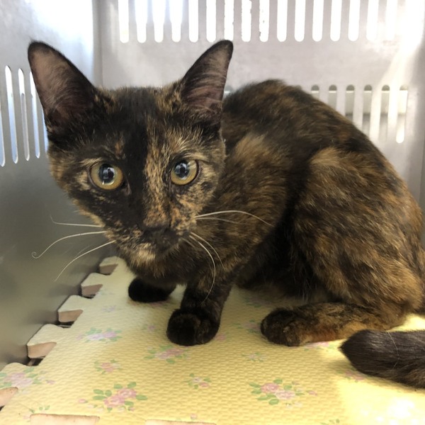 | 特徴(性格など) | 管理番号204 メス 成猫 下松市西豊井にて捕獲されたサビ猫ちゃんです。収容されたばかりですので緊張しておりますが威嚇などもなく触れさせてくれます。 少し痩せているようです。おそらく、満足にご飯を口にしていなかったのだと思います。 ※センターでは猫の捕獲はしておりません。 この子の状況をご理解の上、温かいご縁をお待ちしております。 |