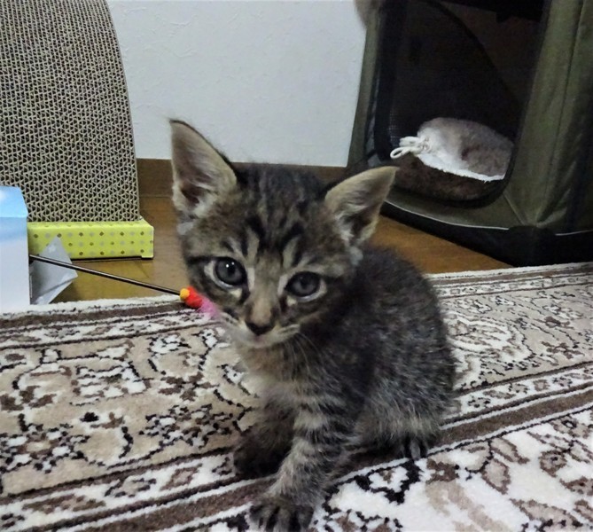 | 特徴(性格など) | 仮名: 夢ちゃん(メス) 毛色: キジトラ 性格: おっとりのんびり、愛らしく甘える女の子です。 まだ個性ははっきりしませんが、抱っこされるのや膝の上で寝るのは大好きです。 今は大人猫と一緒にいませんが、小さいので大人猫が可愛がってくれると思います。 見守りが必要な月齢ですので、留守番時間の短いご家庭を希望しています。 |