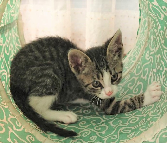 | 特徴(性格など) | 仮名: 類君(オス) 毛色:サバキジ白 推定4月上旬産まれ エイズ・白血病ウィルス検査はともに陰性 便検査済 ノミダニ駆虫済 ワクチン接種済 トイレしつけ済 人に育てられたため、とても懐いています。 元気で他の保護猫達と仲良く遊んでいます。 まだ小さくて突然の体調不良もあります。 すぐに病院に連れて行く事が可能なかた、ペットとしてではなく家族として迎え入れ、迷子防止、脱走防止対策にご協力頂けるかたとのご縁を希望いたします。 |