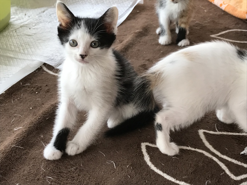 | 特徴(性格など) | 白黒:白多め 背中のぶちは大福風 元気な男の子 白黒:黒多め お鼻にワンポイント 尻尾はまっすぐで長め、おとなしい男の子 三毛:白多め ほぼ白猫だが、おしゃれな水玉の三毛模様 元気な女の子 三毛:黒多め 個性的な模様の綺麗なミケ 一番小柄 |