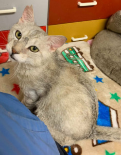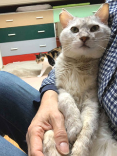 | 特徴(性格など) | 仮名を『さばぞう』といいます。 さばとらの男の仔です。 おれっちここに居るよー! 大鳴きして居場所を知らせて、行き倒れていたところを保護されました。 さばぞうはなかなかのオシャレさんで、シルバーボディに所々茶毛が入っているというお召し物。 尻尾はすらっと長いです。 超がつく甘えん坊で、人見知り猫見知り全くありません。 抱っこも膝上もおんぶも(笑)大好きで、人間にひっつくことができると『おれっち幸せ』なさばぞうです。 FeLVキャリアですが現在発症はなく、元気いっぱいに過ごしています。 まだ昼鳴き夜鳴きありますが、時間をかけて落ち着いていってくれると思います。 手先が器用で、まさかという事が出来てしまうので、脱走防止対策を講じていただいた上でご住居が、猫が外へ出づらい造りの方を希望しています。 【またたび家での白血病キャリアの治療】 生活の質(QOL)の維持/定期的などうぶつ病院での健康チェック/ 免疫アップに役立てているD-フラクションプレミアム(動物用栄養補助食品)(1日1回~2回食餌に混ぜて毎日給与。)/ 細胞賦活作用と炎症を抑える作用に役立てているルミンAもしくはインタベリーアルファ等を与える場合もあります。 白血病でも健康管理をすれば一緒に暮らすことが可能です。 猫白血病についてはコチラをご覧ください。 http://www.catvirus.jp/home/felv/index.html 【医療処置情報】これから実施のも含まれます *健康チェック *3種混合ワクチン接種 *ウイルス検査実施(FIV陰性、FeLV陽性) *検便実施 *駆虫薬投与(レボリューション、ドロンタール) *マイクロチップ装着 *不妊・去勢手術 |