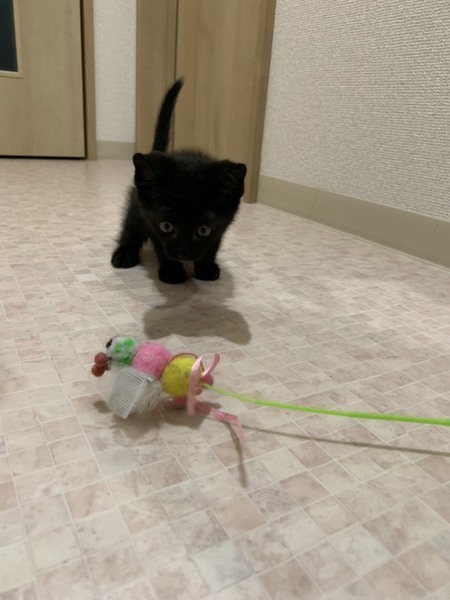 | 特徴(性格など) | 黒猫の『あんころ』800g 掲載NO C296381『もち』 掲載NO C296382『だんご』と一緒に保護しました。 3匹の中では一番人馴れしています。 お腹に白い毛混じってます。 慣れてきました。 遊びとごはんに夢中です。 血液検査 エイズ:陰性 / 白血病:陰性 検便検査 異常なし レボリューション滴下済 三種混合ワクチン 1回目6/17接種済み(2回目1ヶ月後予定) |
