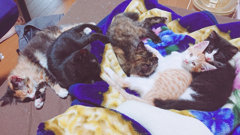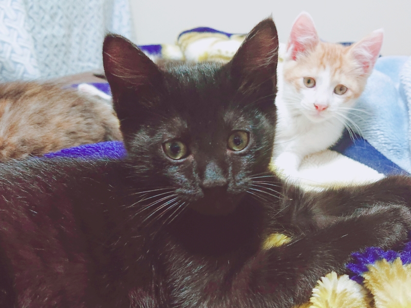 | 特徴(性格など) | 【橙色×白】人懐っこく好奇心旺盛で、兄妹達の毛繕いをする等優しい性格の短毛の男の子です! 【黒】元気いっぱいで人懐っこく、遊ぶのが大好きで運動神経抜群の短毛の男の子です! 【橙色×黒×白】食欲旺盛で少し天然でおっとりしています。うにゃうにゃ言いながらご飯を食べる長毛の女の子です! 【黒×白】兄妹の中でも一番の美人さんです。マイペースで、少し慎重な性格ですが慣れてくるとこっそりくっついて寝てくれるツンデレな長毛の女の子です! 【橙色×薄茶×黒】くるんと丸まったおまがり尻尾がチャームポイントです。慎重な性格の反面寂しがり屋で、慣れてくるとゴロゴロと甘えて離れない長毛の女の子です! |