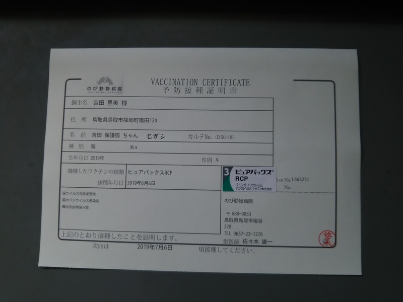 | ワクチン | 済 | 不妊去勢手術 | 未 |
