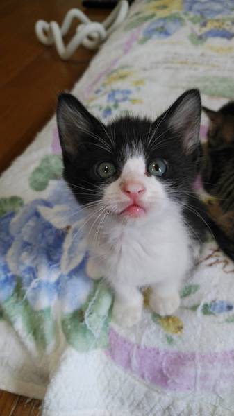 | 特徴(性格など) | 【見た目】 綺麗な白黒ハチワレです。 ぼーっとしてみえるお顔が可愛いです。 【性格】 いたずらっ子ですが、のんびりしていてとても優しい子です。 猫も人も大好き。遊び大好き! 兄弟の半長毛キジ白♀と仲良しなので、一緒にもらっていただける方だと嬉しいです。 ↓この子が兄弟のキジ白です。 https://satoya-boshu.net/foster/detail.php?@DB_ID@=296402 |
