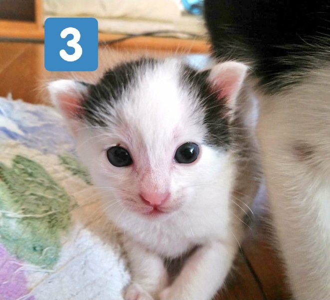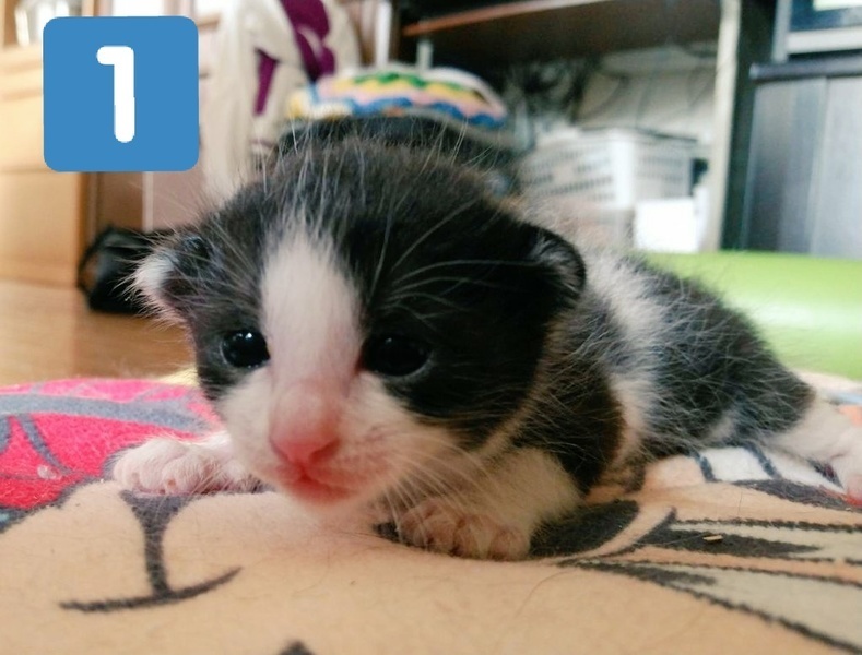 | 特徴(性格など) | ☆Twitterで近況を報告しています。 @pasumoko https://twitter.com/pasumoko?s=09 ①ハチワレ黒白♀ 綺麗なハチワレで、美形になりそう。やんちゃな子です。 ②黒白♀ 兄弟より一回り小さい子ですが、元気いっぱい。 タキシードを着たような面白い柄をしています。 兄弟みんなから耳を吸われています。 ③牛柄白黒♂ 一番元気な子です。 体が大きく、授乳時はしがみついてきます。 顔の作りは一番美形です。 ④茶トラ♂ ※募集停止 のんびり屋で可愛い子です。 ミルクの世話が難しい方は、ある程度育ってからお家までお届けします。 問い合わせの際は、どの子か分かるように番号を添えてご連絡いただけるとありがたいです。 |