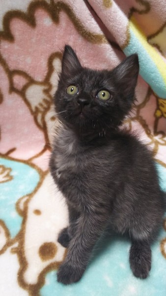 | 特徴(性格など) | 真っ黒な男の子です。 200gのときから、ミルクで育ててもらいました。人のお膝が大好きです。甘えん坊でゴロゴロすりすりと、ついてきます。ぜひ、モジャくんに会いにきてください。 |