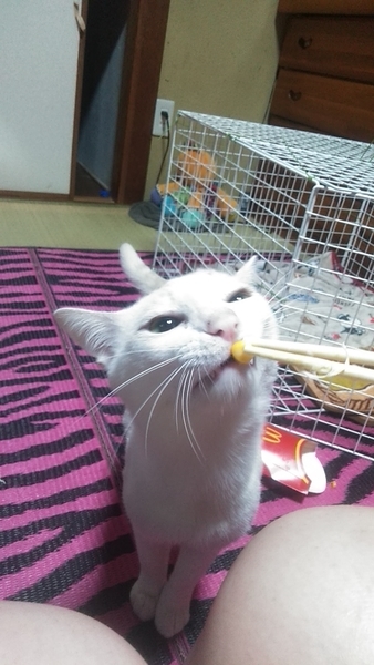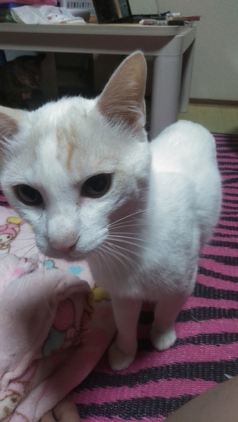 | 特徴(性格など) | 真っ白というよりは少しクリーム色が入っていて頭にはキャラメル色があります。 尻尾もキャラメル色とクリームのシマシマです。 人慣れはまだしてないですが、手からおやつは食べてくれます。 近くで横になってくれるようにもなりました。 |