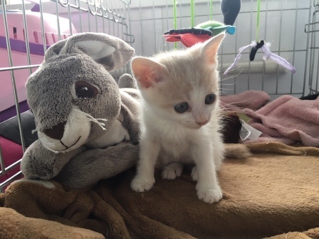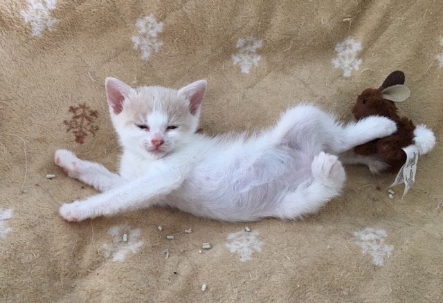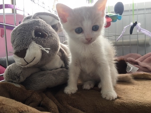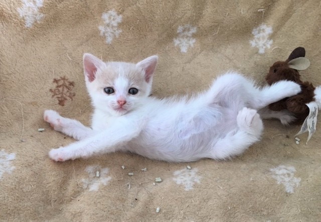 | 特徴(性格など) | 仮名:尚弥くん 4月22日生まれ オス エイズ・白血病、陰性 3種混合ワクチン1回接種済 検便、ノミダニ駆虫、トイレ躾済み (2回目ワクチン7月24日予定) 毛柄:白地に、所々ミルクティ色のポイントがあります。しっぽはミルクティ色の長しっぽです。 ちょっとたれ目です。 人馴れしています。 4兄弟でしたが、尚弥くんだけ生き残りました。 ひとりぼっちだけど強い男に育って欲しいと思い仮名に「尚弥」と付けました. 同世代の仔猫たちと朝から晩までにゃんプロをして遊んでいますが、名前の通り強い男に成長しています。 一緒にエントリー中の尚弥ママと2匹一緒にお迎え頂けるお家とのご縁をお待ちしています。 |
