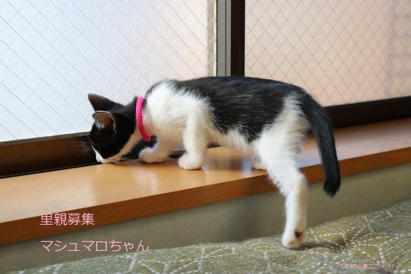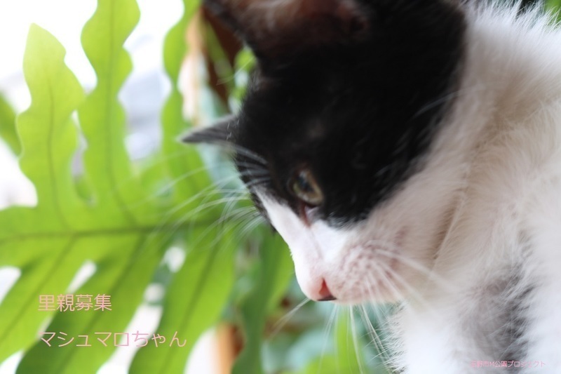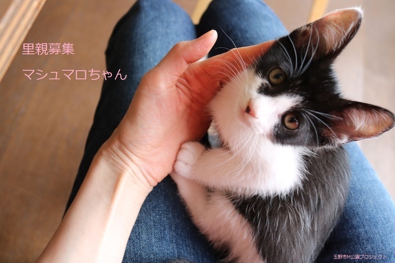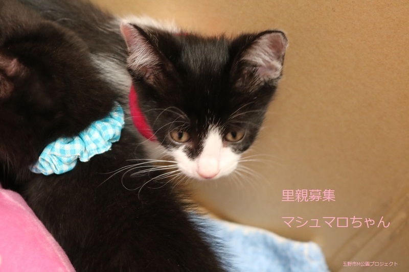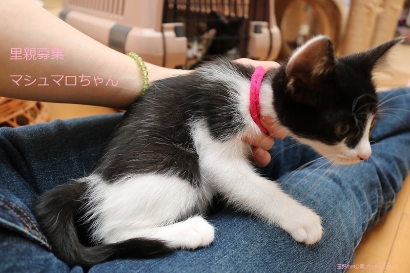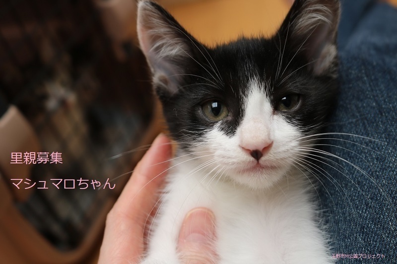 | 特徴(性格など) | 白黒子猫、女の子、仮名:マシュマロちゃん 推定生後2か月くらい、体重:780g(6/11現在) 健康診断済み、ブロードライン済み(6/12) 初回三種混合ワクチン接種済み(6/14)、三種混合ワクチン追加接種済み(7/8)。 血液検査-エイズ・白血病-ともに陰性(6/14)。 トイレしつけ済み 元気な甘えんぼさんです。7兄弟で元気に遊んでいます。 幸運を引き寄せる鍵しっぽです。 (9/13) 避妊手術済み。 |