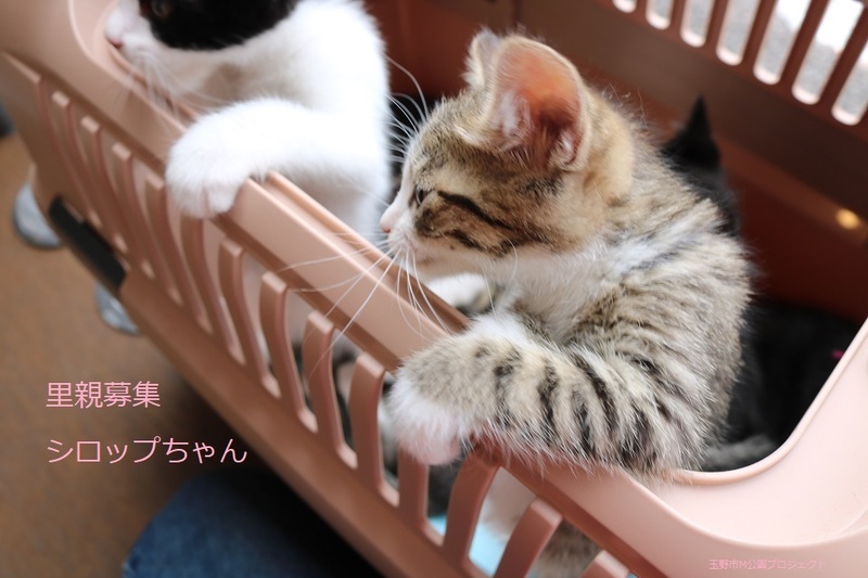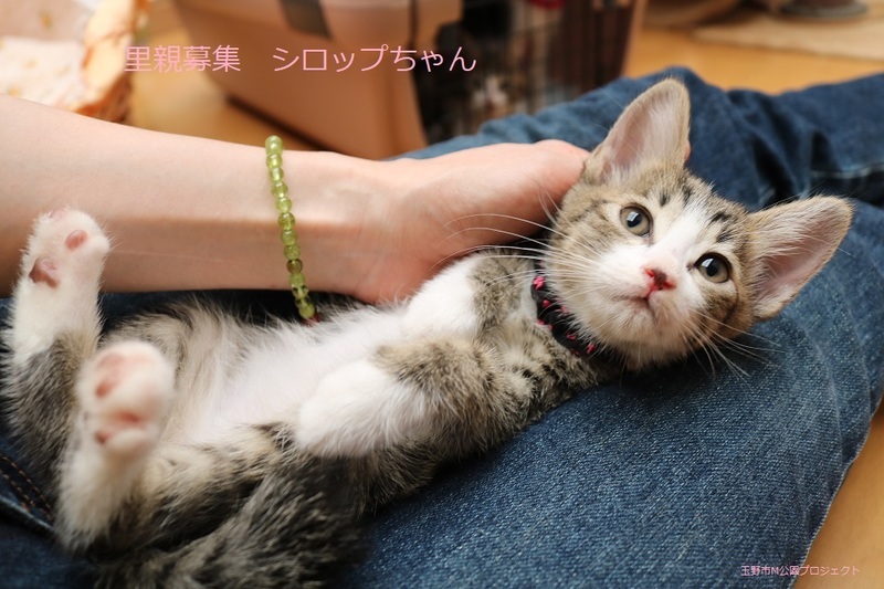 | 特徴(性格など) | キジ白子猫、女の子、仮名:シロップちゃん 推定生後2か月くらい、体重:650g(6/11現在) 健康診断済み、ブロードライン済み(6/12) 初回三種混合ワクチン接種済み(6/14)、三種混合ワクチン追加接種済み(7/8)。 血液検査-エイズ・白血病-ともに陰性(6/14兄弟代表でムースくん、マシュマロちゃんで実施)。 トイレしつけ済み 元気な甘えんぼさんです。7兄弟で元気に遊んでいます。 幸運を引き寄せる鍵しっぽです。 シロップちゃんは可愛い白手袋です。 |