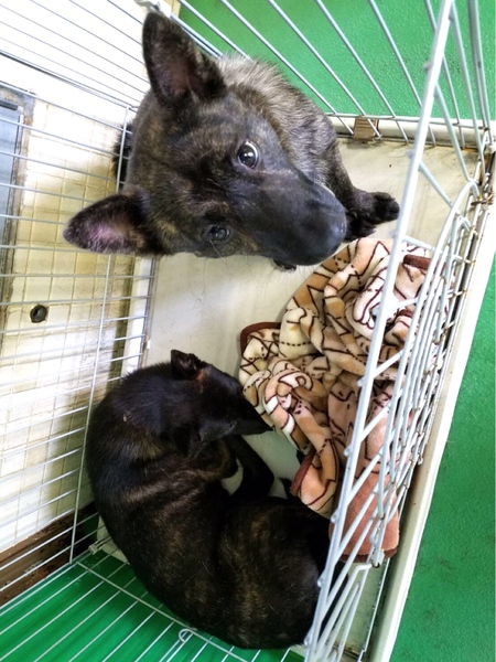 | 特徴(性格など) | まだ2〜3歳位、中型雑種、黒茶のトラ柄ブリンドル、怖がりさんの女の子2匹が助けを待っています! 長崎県諫早市内にて多頭飼育、広い敷地で放し飼いで餌やりだけされていた子達です。 姉妹か母娘になりますがどちらかは不明です。。 不妊をせずに頭数が増えて手に負えなくなったとの事で管理所へ持ち込まれました。 (持ち込む時に避妊手術、9種混合ワクチンは済ませてあります)生まれてから、一度も首輪もした事が無く、人と一緒にリードを付けてのお散歩もした経験が無い子達です。ご飯だけ与えられ、撫でたり触れ合ったり、人からの当たり前の愛情を知らぬまま生きてきました。 人と暮らした経験が無い上に収容され、何もかもが初めての環境になるので無理もありませんが、可哀想にまだとても怖がっています。 馴れるまで時間を要すると思われます。 持ち込まれる際に初体験の首輪をしてビックリしている様子です。 見た目の推定になりますが赤い首輪の子は、12〜3キロ前後位、青い首輪の子は少し小さめ、11〜12キロ前後位でしょうか。 不安いっぱいの赤首輪ちゃんは怖くてたまらないのでしょう、ほとんど動かずにジーっとうずくまっている状態で、まだ人の手からフードを食べることが出来ません。 青首輪ちゃんは身体を起こす様になり、手からフードも食べ、時折寝床から前に出てきたり寝そべって寛ぐ様子も見られます。 2匹共、鼻先や顎やお腹など大人しく触らせてくれますが頭は撫でてもらった経験が無いのか、嫌がります。 怯えていますがまだ若い子達ですし、色々怖い事ばかりなのでしょう。人間が焦らずゆっくりゆっくり長い目で見守りながら、根気よく愛情を持って接すれば、いつかきっと!新しい家庭に馴染んでいけるのでは、と思います。 この子達は身勝手な人間による被害者で何も悪くありません。 生涯大切に寄り添い、可愛がってくださるご家庭とのご縁が結ばれ幸せになれます様に。 ⭐️必ず室内飼育で、なるべくお留守番の少ないご家庭。 ⭐️トイレの躾も1からとなります。 当分の間は何かと手がかかり大変だと思いますが覚悟と理解で受け入れて下さる方。 ⭐️優しい先住犬が居るご家庭大歓迎です。 1日も早く温かな愛情を目一杯注がれながら、元気に幸せに生きてほしいです。人間より遙かに短い生涯です。 冷たく硬いコンクリートの上、檻の中で、命の期限が迫る中、ひたすら優しい素敵な里親様を待ち続けています。 悲しい事にこの世の中、人間に飼われないと犬は生きていく事が出来ません。 捨てる飼い主、探さない飼い主、医療にかけない飼い主、虐待する飼い主…飼い主を選ぶ事も出来ません。まだこれからのこの子を生涯大切に可愛がって下さる優しい素敵な里親様、どうかお願い致します。きっと、必ず最高の家族になります! もうこれ以上悲しい辛い目に遭わせたくありません。本当の愛情、温もりを知ってほしい、辛かった分、寂しかった分、まだまだこれからの犬生はのびのびと幸せいっぱいに愛し愛されて、生きてほしいと願っております。家族の一員に迎え、暖かいお家で、一緒に暮らして頂けませんか。 何卒宜しくお願い致します(๑•ᴗ•๑)♡ ◆健康状態 今のところ体調不良は見受けられず、フードも食べています。 管理所では収容するのみ、になり、健康診断などは一切行っておりません。 (狂犬病予防接種、フィラリア予防実績はありません) 収容動物の健康面の保証、トライアルは無い為、例えどんな病があろうとも全てを受け止め丸ごと受け入れて下さる方、終生愛情飼養して下さる方のみ への譲渡となります事をご理解、ご了承の程何卒宜しくお願い申し上げます。 ※譲渡後は必ずお早めに病院でメディカルチェック(血液検査、便検査、フロントライン、シャンプー等)お願い致します。 ★特にまだ馴れていない子は逃げよう、隠れようとする傾向があります。思いがけない身体能力を発揮し、高い塀や柵を飛び越える可能性があります、逸走、脱走にはくれぐれもご注意願います。 お散歩デビューはまだ当分時間を要すると思います。細心の注意を払い、ダブル、トリプルリードで、 言葉を持たない大事な家族を守る為に、首輪、胴輪には必ず迷子札、鑑札をつけてください。 https://wanchan.jp/osusume/detail/2395 http://psnews.jp/dog/p/45558/ https://light-comes-in.jp/dog-doublelead/ ⭐︎ノミマダニ駆除(ネクスガード投与済み) ◆ワクチン摂取、去勢手術の有無 9種混合ワクチン済み 避妊済み |