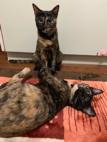 | 特徴(性格など) | 見た目も性格もユニークな姉妹です。 お姉ちゃんは、なによりも人が大好きで、他の猫ちゃんとも上手に距離を取りトラブルもなく控えめな子です。 妹は、新しいことが好きで猫らしい気紛れな子です。 |