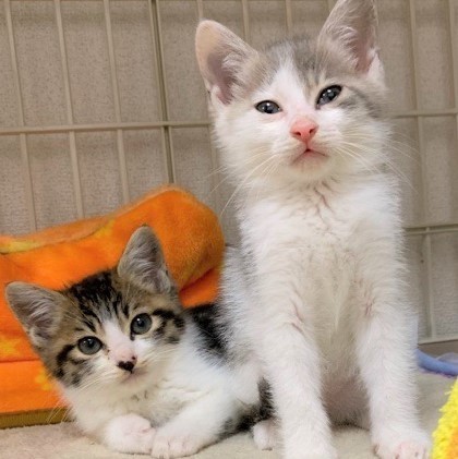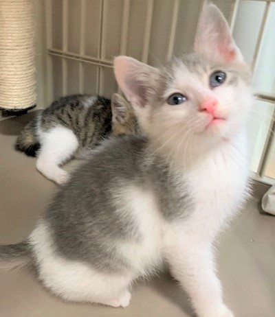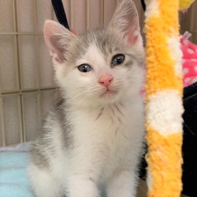 | 特徴(性格など) | 身体は小さいですが元気いっぱいです!好奇心旺盛でじゃらしやおもちゃが大好きでよく遊びます。2段ケージも身軽によじよじ登り、1階のトイレに向かってジャンプします(笑) 食欲も旺盛で、ご飯の準備をしていると「うぎゃー」と雄叫びを上げながら大興奮です! キジ白のあさりくんとは兄弟です。いつもにゃんプロをしたりして遊んでいます。 毛色が薄いグレーでとても綺麗です。 1匹での譲渡もOKですが、あさりくんと一緒だとより嬉しいです。 |
