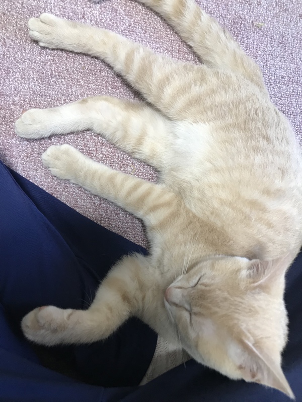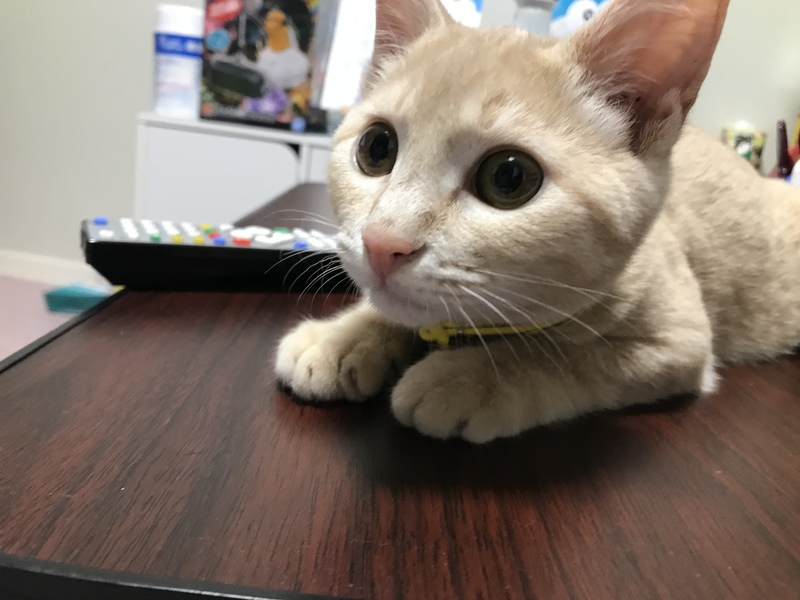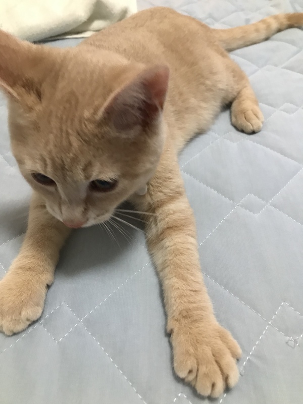 | 特徴(性格など) | ベージュ、薄い縞模様 とっっても甘えん坊で元気いっぱいな子猫です。 歩くと追いかけてきて、座ると膝に乗ってきます。寝るときも一緒に寝てくれます。顔が小さく足としっぽが長いスタイリッシュな猫ちゃんです。 いただいた時からトイレも覚えていて1回も外ですることはありませんでした。ご飯は1日2回子猫用のドライフードを与えています。問題なく食べてくれます。 6/9に病院を受診し、検査等した上で健康上問題のない猫だと診断を受けました。 去勢適正期ではないため、去勢はしていません。ご了承ください。 |