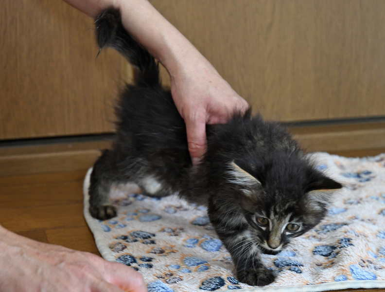 | 特徴(性格など) | 仮名 NO.2111 キジトラ 子猫 生後 1ヶ月半 ノミダニ駆除 ※現在順調に離乳食をもりもり食べています。 トイレも覚えてきています。体外体内駆虫済みですが、まだ小さいので要観察です。 走り回ってとてもかわいい時期ですが、母猫の免疫が切れて一番これから体調を崩したりする月齢に入ってきています。 まだ冷える時期なので保温も必要です。 給餌も一日4、5回です。ドライフードも少し食べ始めました。 体調管理がまだまだ神経を使う時期の子です。 細かいことは面会時にレクチャーをしますが、数時間ごとの給仕ができる方。 体調がおかしいと感じた時、すぐに獣医に連れていける方 |