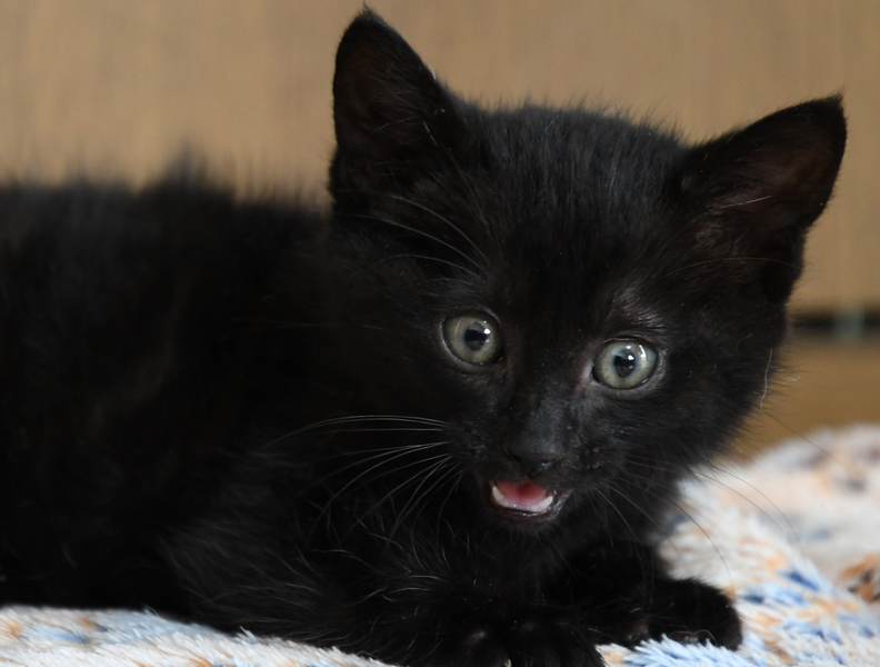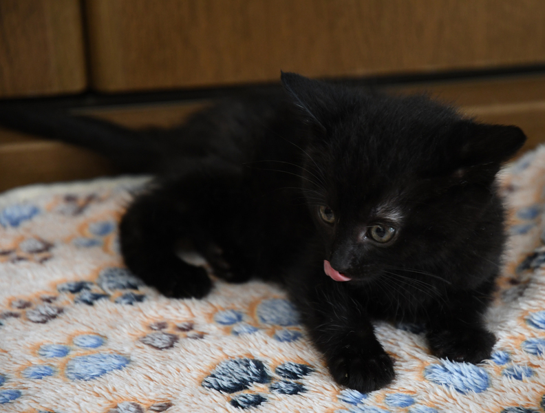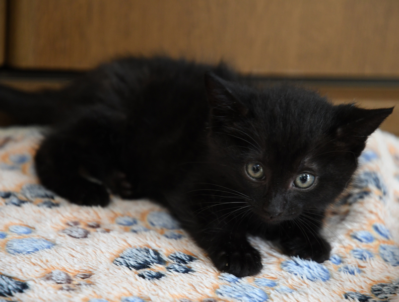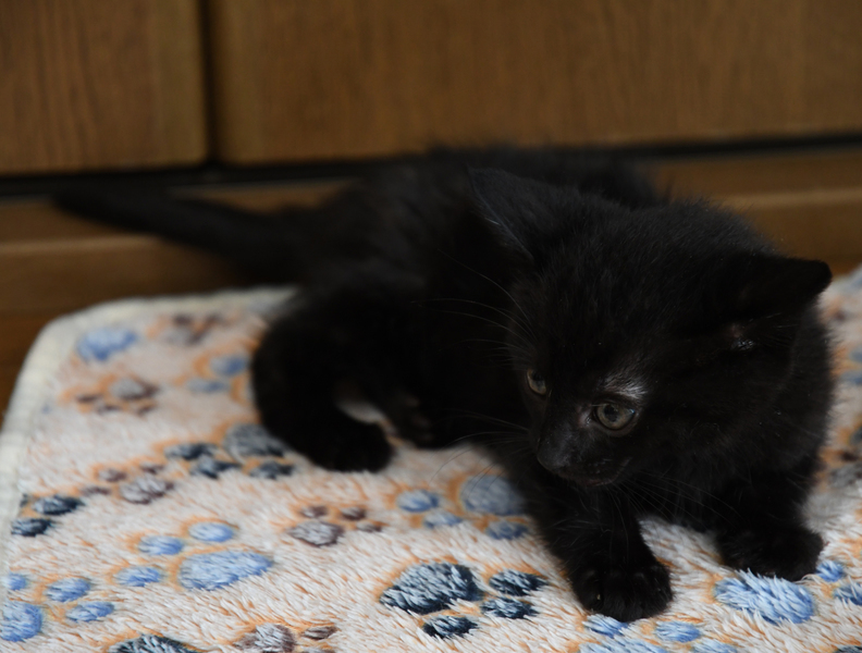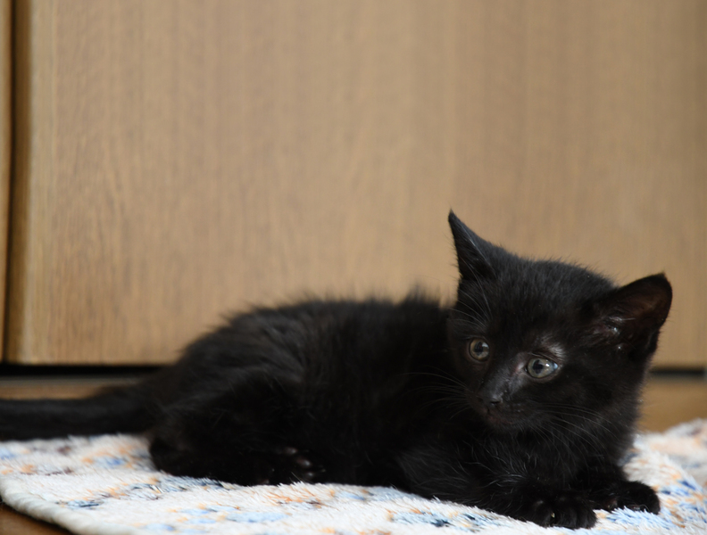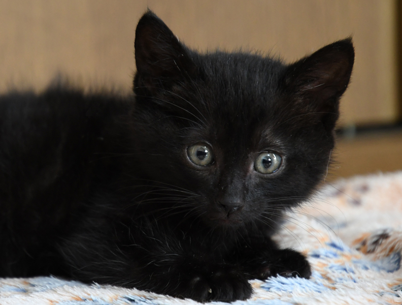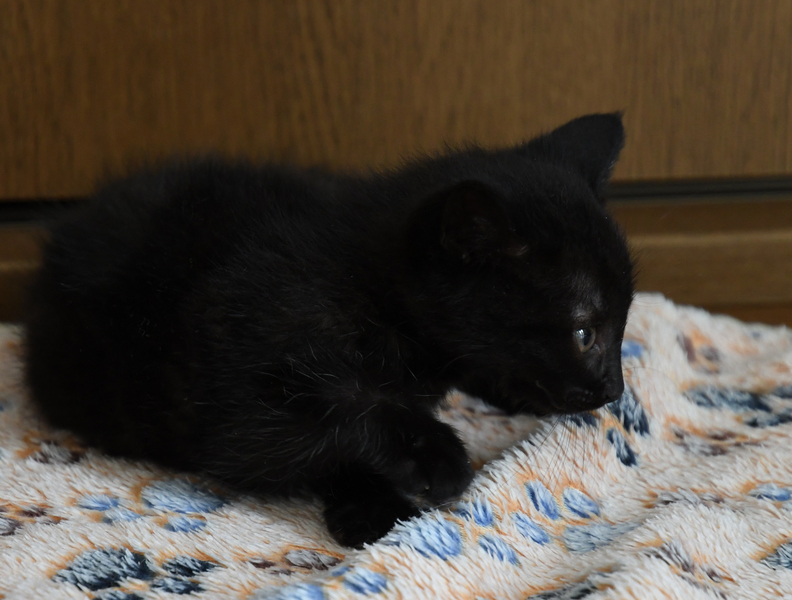 | 特徴(性格など) | NO.2119 クロ 子ネコ 雑種 生後 1ヶ月半 ノミダニ駆除 ※現在順調に離乳食をもりもり食べています。 トイレも覚えてきています。体外体内駆虫済みですが、まだ小さいので要観察です。 走り回ってとてもかわいい時期ですが、母猫の免疫が切れて一番これから体調を崩したりする月齢に入ってきています。 まだ冷える時期なので保温も必要です。 給餌も一日4、5回です。ドライフードも少し食べ始めました。 体調管理がまだまだ神経を使う時期の子です。 細かいことは面会時にレクチャーをしますが、数時間ごとの給仕ができる方。 体調がおかしいと感じた時、すぐに獣医に連れていける方 |