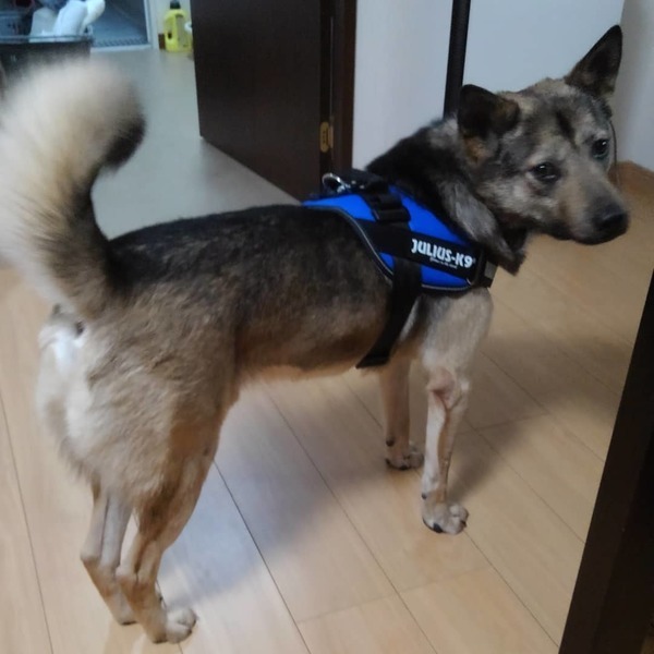 | 特徴(性格など) | 仮名 ウルフ(雑種) 体重20kg 狂犬病予防接種済 混合ワクチン接種済 ノミダニ駆除済 フィラリア陰性 人慣れは問題なくとても甘えん坊ですが甘え方がまだぎこちなくそれが何とも言えない可愛さです。 名前や風貌からは想像つかない位大人しくて慎重な子です。ビビりさんですが未経験故のビビりだと思いますのでこれから色々経験していけば克服出来ると思います。 無駄吠えありません。我が家でまだ吠え声を聞いた事がありません。 お散歩は上手に出来ます。他犬に攻撃的になる事も無いので女性でも十分にコントロールできると思います(大きさはありますのでいざという時の注意は必要です)。 トイレは完全外派です。 お留守番は苦手のようで退屈だったり怖かったりすると破壊行動が見られます。現在目の届かない時間帯(外出時や就寝時)はサークルに入って貰っています。 我が家では先住犬と上手くやっています。強気に出た事は一度もありません。 車酔いはありませんので色々お出かけに連れて行ってあげて下さい。 |