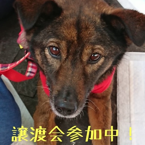 | 特徴(性格など) | 中型雑種。黒~茶色の毛色です。 とても甘えっ子で、人間大好きです。 トイレは外派ですが、室内トイレも可能です。 |