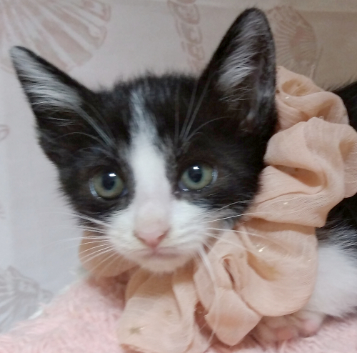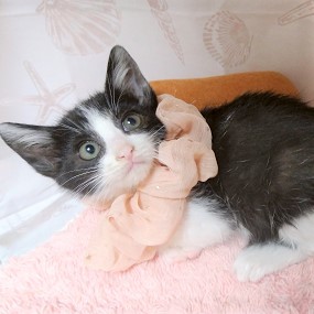 | 特徴(性格など) | 黒白で、尻尾は長くてまっすぐです。 過度に怖がることもなく、慎重さに欠けることもなく、知的な感じのする長女タイプです。 単頭での譲渡も可能ですが、きょうだいのはるとくん、あきとくん、あんなちゃんと一緒の譲渡だとうれしいです。 |