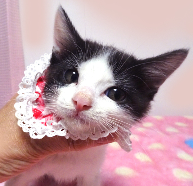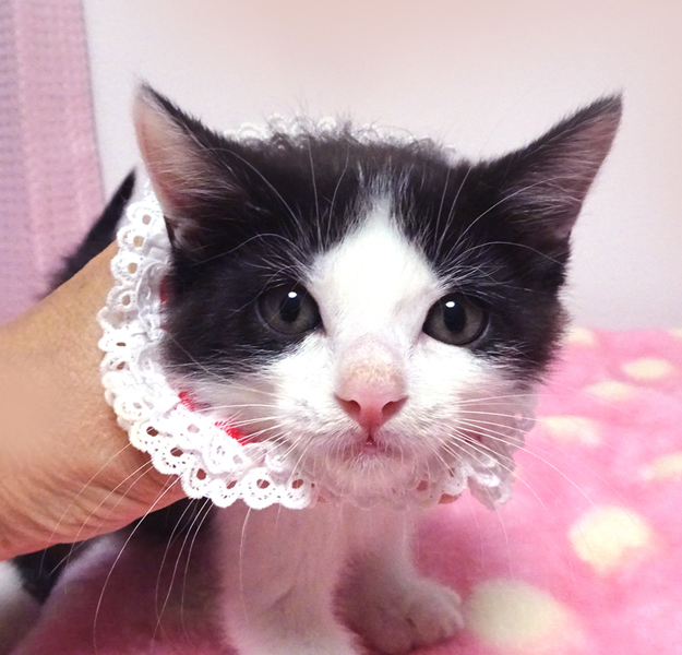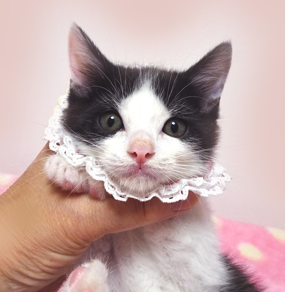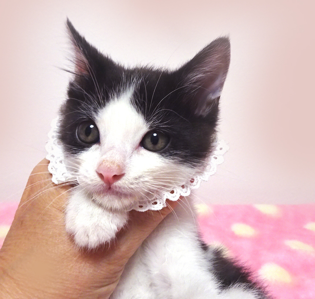 | 特徴(性格など) | 【猫の仮名】 ももこちゃん (担当 松嶋) 【毛色・柄】 黒白八割れ、長いシッポ、コロコロしています♪ 家で生まれ育った子で、猫を初めて飼う方でも大丈夫です。 走っても大丈夫なペット可のお住まいで、家族の一員として生涯大切にして下さるご家族を募集しています。 猫だけのお留守番が長時間でないご家族を希望します。 |