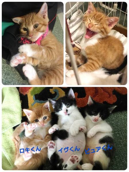 | 特徴(性格など) | 6月23日(日)12:00~16:00(最終申込15:30) ねこざんまい譲渡会に参加予定です! 《会場のご案内はこちら》 https://ameblo.jp/neko3mai/entry-12481253257.html 希望の猫ちゃんがいる場合は、12時に会場へお越し下さい。 先着順ではございませんが、同じ猫ちゃんに複数名のご希望者さまがいらっしゃる場合は、12時半でお見合い受付を締め切らせていただく場合がございます。 ※譲渡会ご来場につきまして、事前予約は不要です どうぞご家族みなさまでご来場下さい ★★★ご来場前に必ずご確認下さい★★★ 《里親様へお願いはこちら》 http://www.neko3mai.com/condition/condition.html 《家族募集中猫ちゃん一覧はこちら》 http://www.neko3mai.com/entrycats/entrycats.html ◆ 名 前 ◆ ロキくん ◆ 年 齢 ◆ 約2ヶ月 ◆ 性 別 ◆ 男の子 ◆性格は?◆ 可愛い茶白の男の子、ロキくん♪ 3兄弟の中で、1番自立心が旺盛なタイプ。 1人でどんどん探検に出たり、隠れていつの間にか寝てしまったり。 ごはんよりも楽しいことが最優先! 飛んだり跳ねたり、人の背中に登ったり(笑) ごはんも、お腹が空くとしっかり食べてくれます。 小さな時に保護していますので、人馴れは抜群です! ペットではなく共に暮らす家族の一員としてにお迎えいただける、お留守番のないご家庭を希望しています。 |