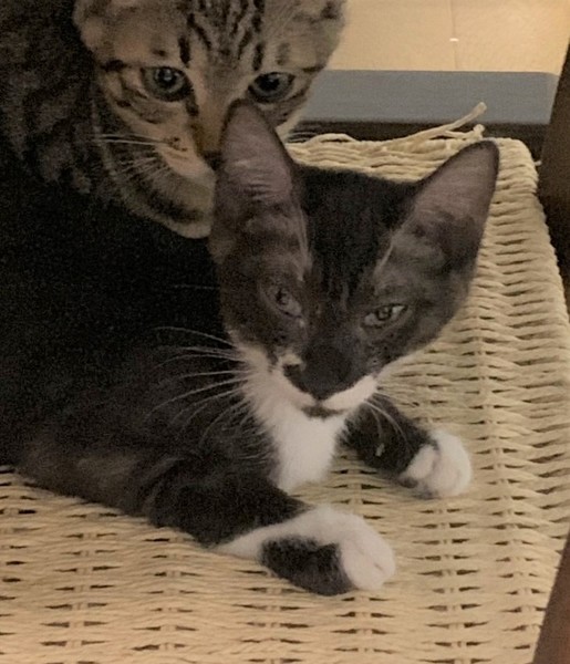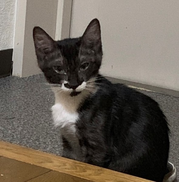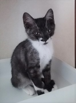 | 特徴(性格など) | 【猫の仮名】パティ 【毛色・柄】黒白、長くてまっすぐなシッポ(担当 桂) スモークブラックと白の綺麗な猫です。 子猫っぽい仕草が可愛いく、抱っこ大好きな甘ったれさんです。 |